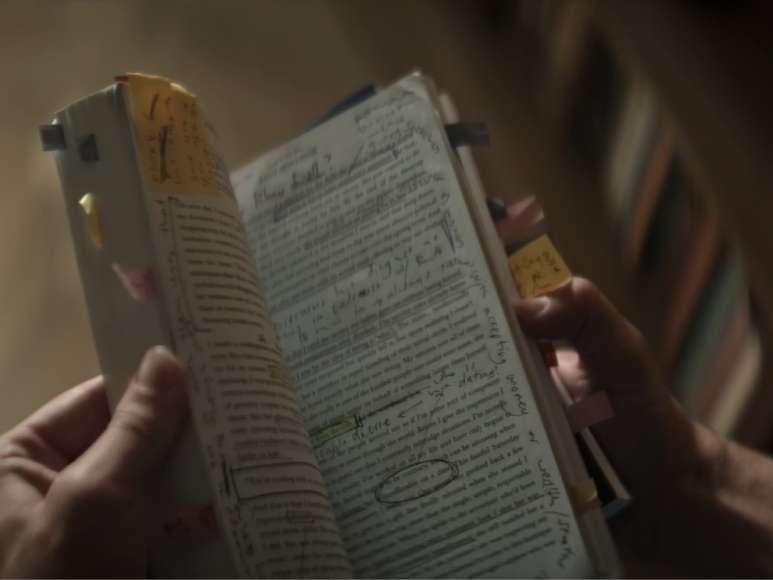 Most of legible text of the book can be seen on S04E01 (Joe Takes a Holiday) and S04E08 (Where Are You Going, Where Have You Been), here is a similar approach we made for a custom setting.